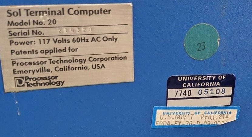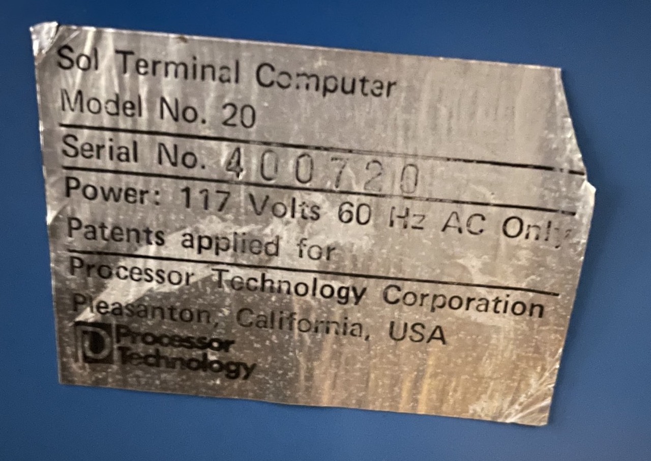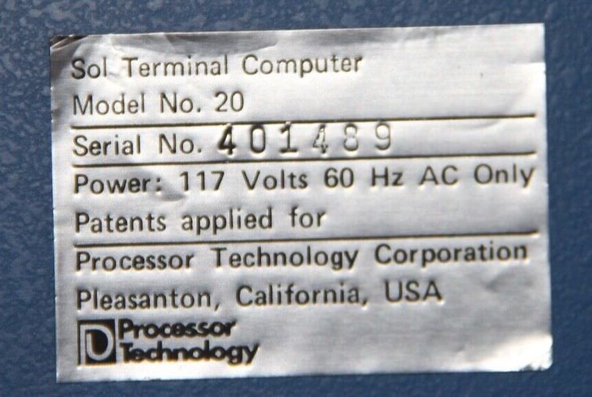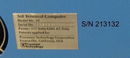 The serial numbers are still a bit of a puzzle. According to the information I know, about 10,000 to 12,000 Sol-20s were produced (sold); the number 12,000 comes from Lee Felsenstein. About half of them probably as kits. But, the serial number is six digits, four digits would only be needed. Although I am not sure, I have added a hyphen as shown below. So the 21 and the 40 would have a different meaning that I don't know. I didn't get a clear answer in the Facebook group "Vintage S100 Computer Enthusiasts" either.