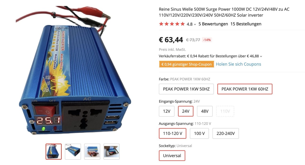 The boom in the solar industry (maybe) has solved the frequency problem. With the help of a solar inverter, you can generate alternating current (AC: 115V, 230V) at 50 or 60 Hz (pure sine wave) from direct current (DC: 12V, 24V, 48V).