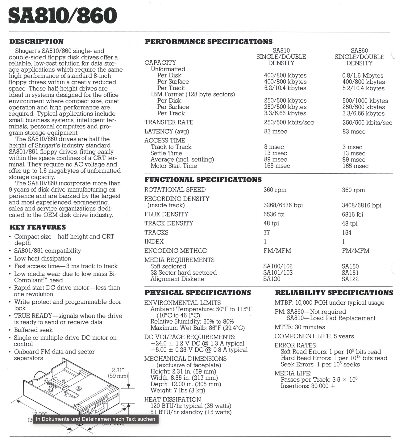 In my opinion the SA860 is the best 8" drive I ever had. Stupidly, I destroyed my first drive myself through inattention. I am still annoyed!