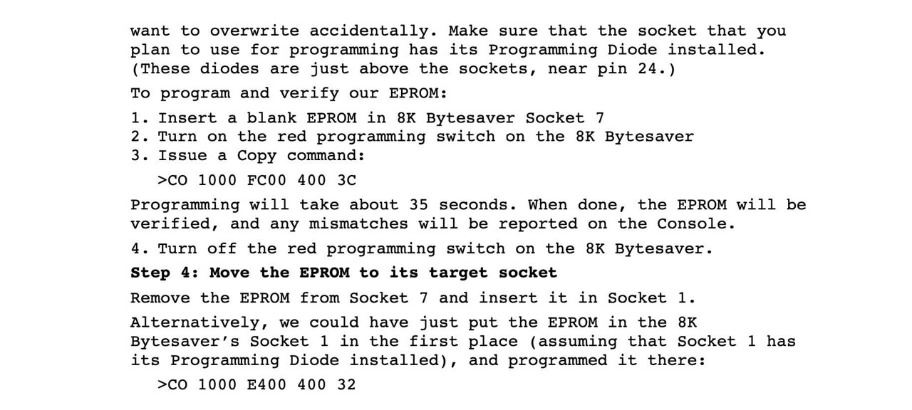 What good is the best EPROM programmer if you don't have the appropriate program for programming? And here Martin Eberhard has done an excellent job. His program BYTESAVE can be used for the following Cromemco S-100 boards: