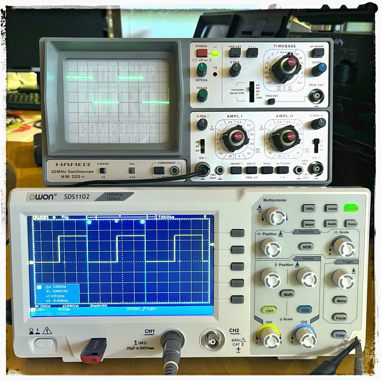 I have two oscilloscopes. An analog HAMEG HM 203-4 (20 MHz, 1982) and a digital OWON SDS1102 (100 MHz, 2021). Admittedly, the OWON is of course very handy and fits on even the most crowded desk. But the HAMEG is, of course, simply fantastic. You can't compare the two. Just as little as a Raspberry Pi and a Kaypro II.