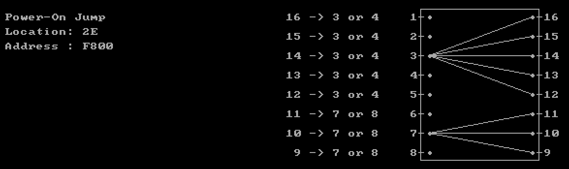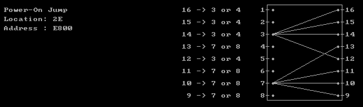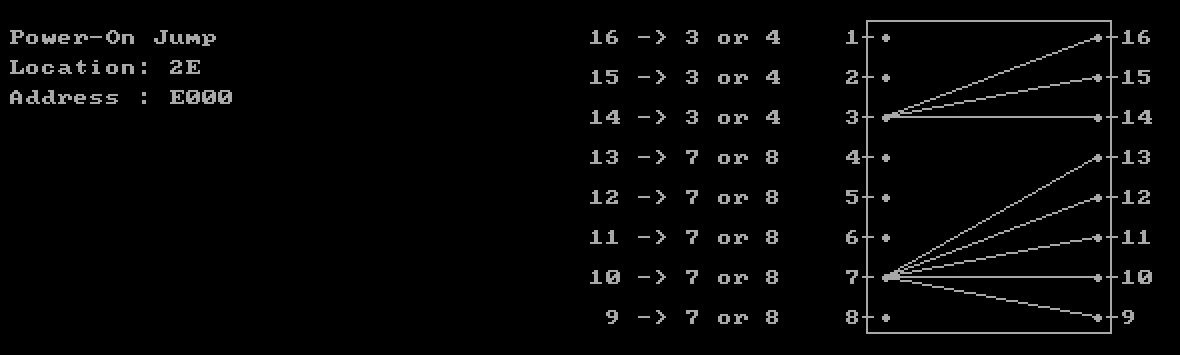 Note: Maybe I missed something, but the jumper at E5 has 14 pins, not 16! At least the E000 combination fits at E2.